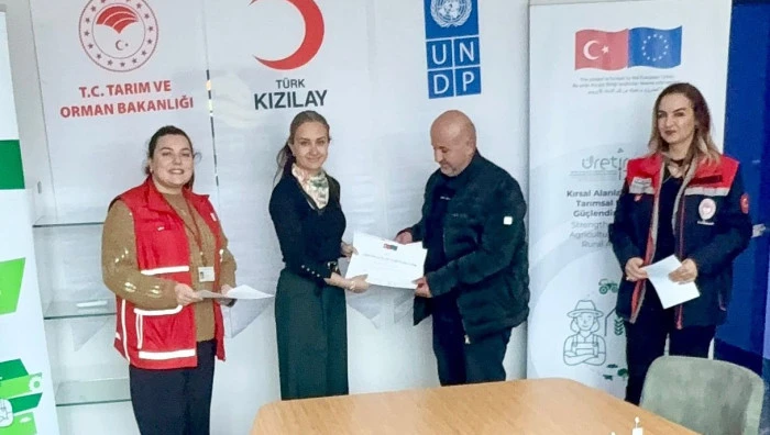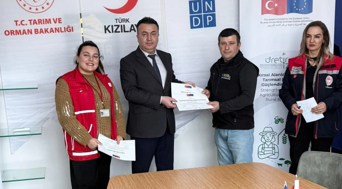 INSURE Projesi kapsamında tarım ve hayvancılık sektörlerinde istihdama yönelik mesleki beceri geliştirme kurslarının devam ettiği ifade edilirken, kursiyerleri istihdam eden işletmelere kişi başı 1.000 Euro ile 3.000 Euro arasında ayni destek sağlandığı kaydedildi.