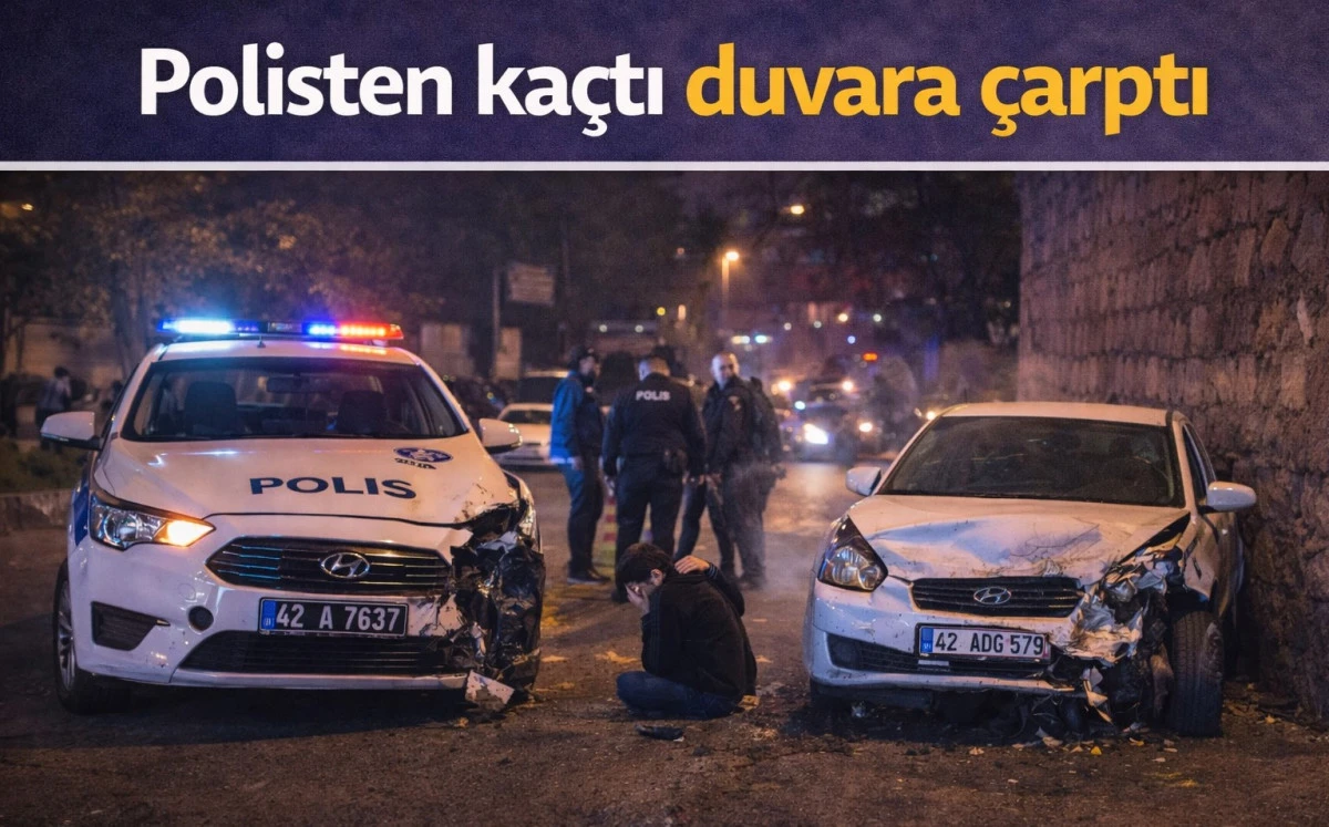 Konya’da bıçaklı kavga ihbarı üzerine harekete geçen polis ekiplerinden kaçan şüpheli, ters yönde ilerleyip polis aracına çarptıktan sonra kaza yaptı. Yaya olarak kaçmaya çalışan şüpheli düşerek yaralandı.