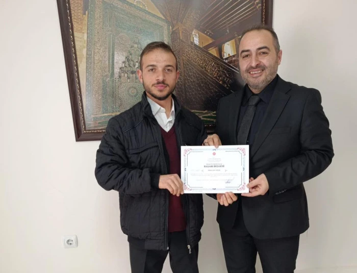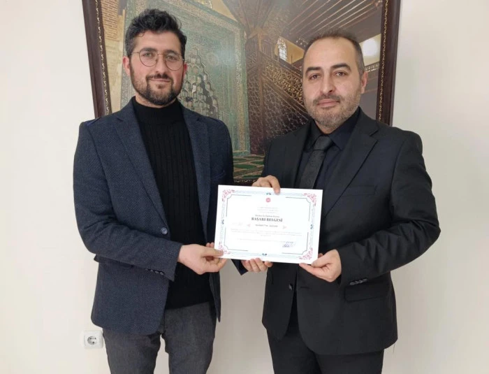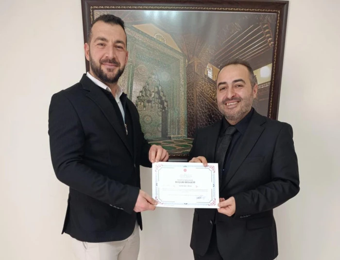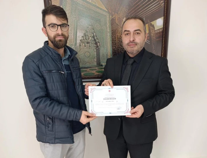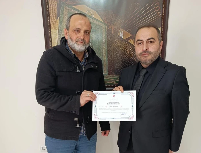 Kurs sürecini başarıyla tamamlayan din görevlilerine belgeleri, Enes Aktaş tarafından takdim edildi.