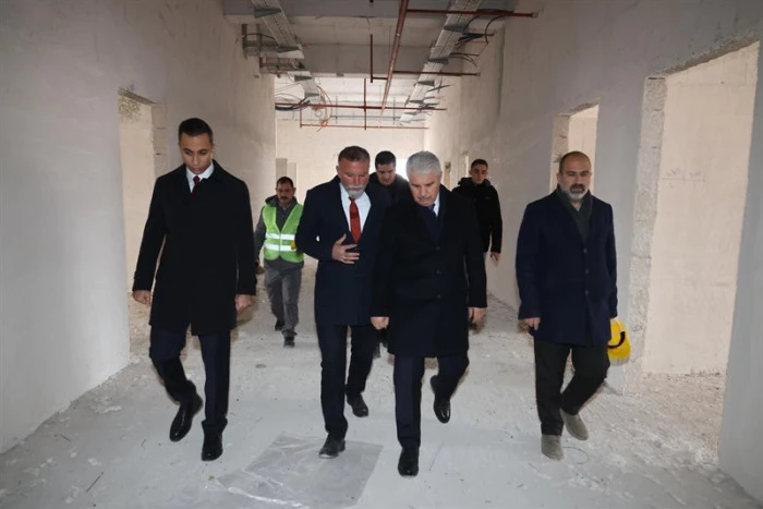 Program kapsamında yapımı devam eden Derbent Devlet Hastanesi inşaat alanında da incelemelerde bulunan Vali Akın, yetkililerden çalışmaların son durumu hakkında bilgi aldı.