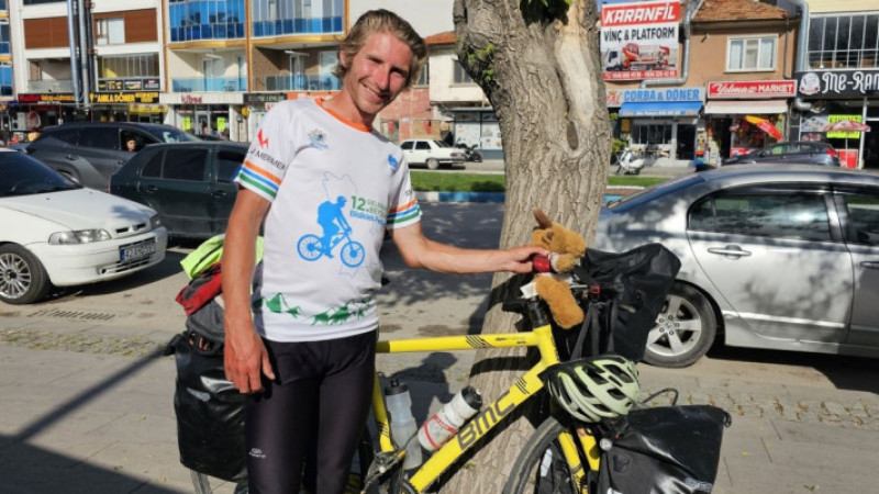 Bisikletiyle dünya turuna çıkan Fransız turist, kısa sürede Türkçe’yi öğrendi.