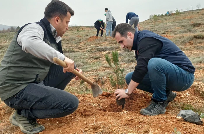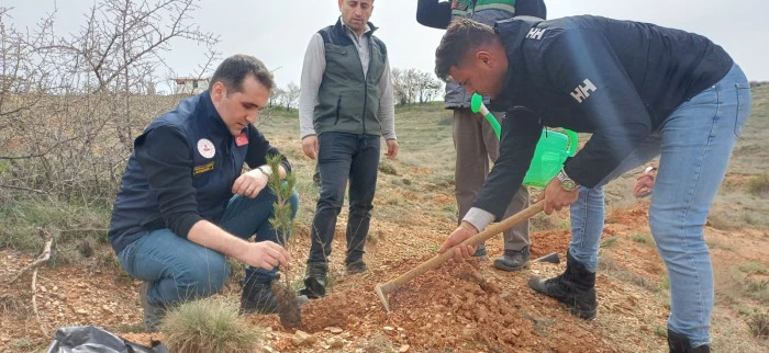Dikim çalışmalarının ardından katılımcılar, toprakla buluşturulan fidanlara can suyu vererek etkinliği tamamladı.