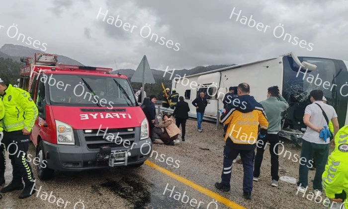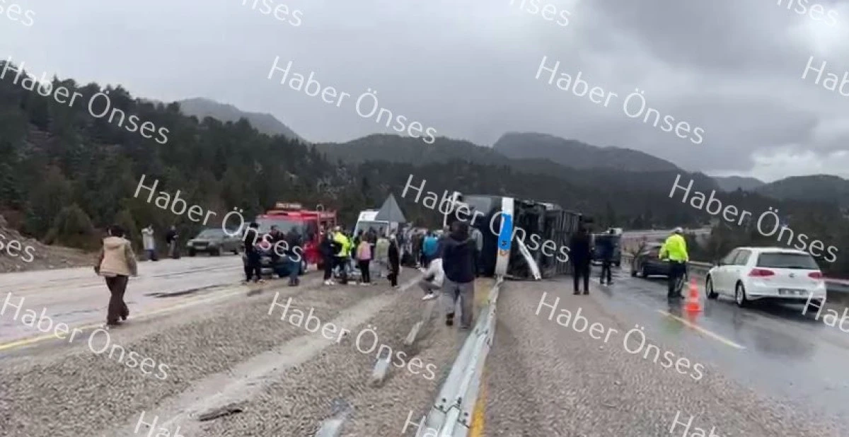 Yolcu otobüsü Konya Antalya kara yolunda devrildi, yaralılar var