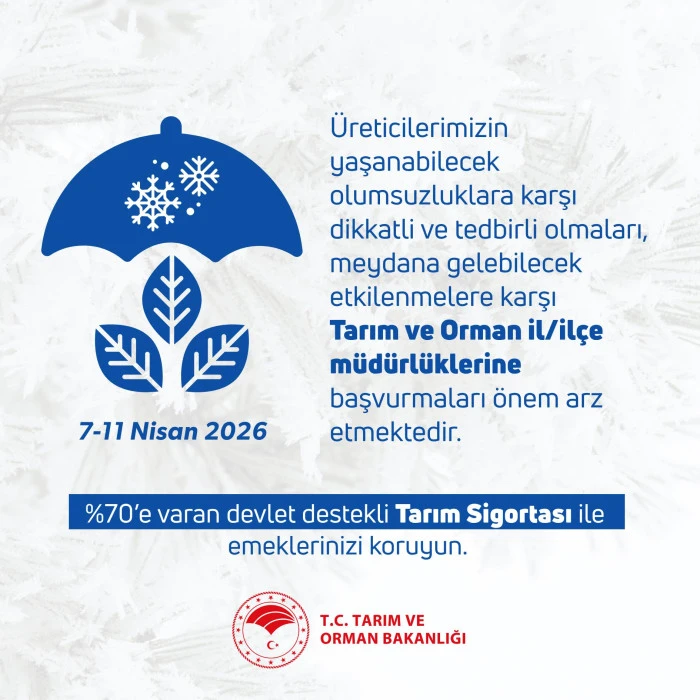Tarım ve Orman Bakanlığı, çiftçileri yaklaşan zirai don riskine karşı uyardı. Bakanlık tarafından yapılan açıklamada, 7-11 Nisan 2026 tarihleri arasında Türkiye’nin bazı bölgelerinde beklenen olumsuz hava koşullarının tarımsal üretimi tehdit edebileceği belirtildi.
