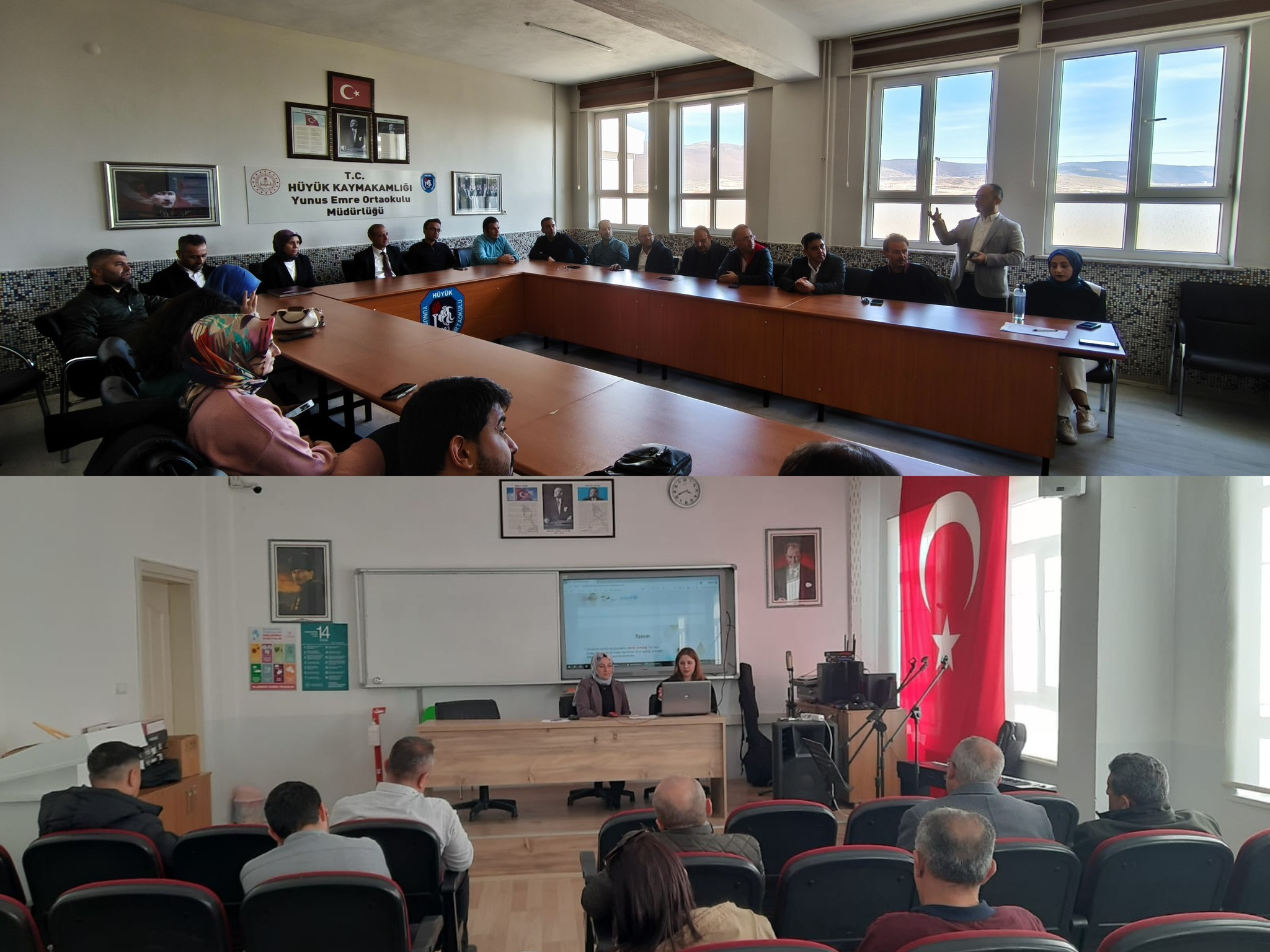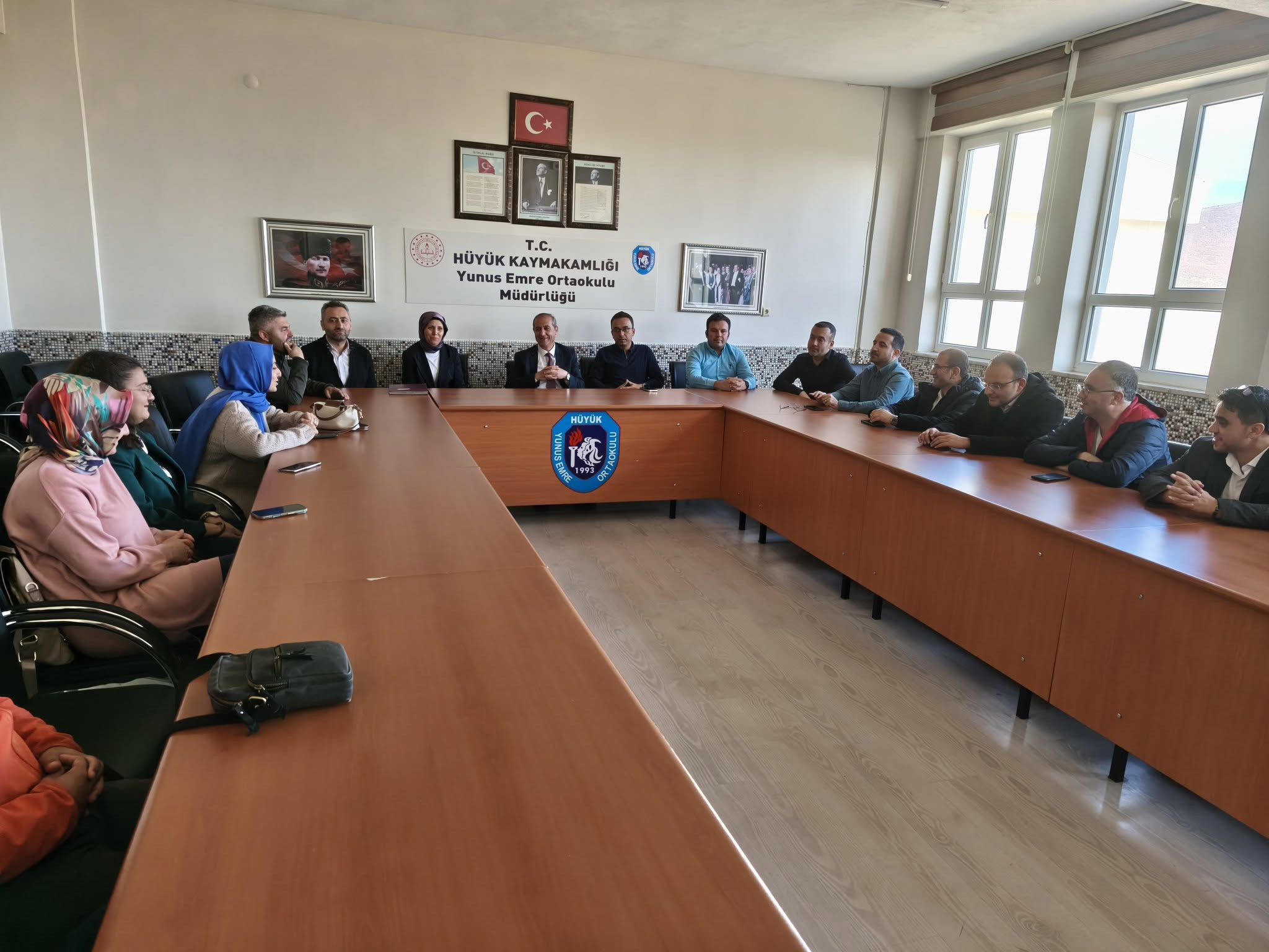 İlköğretim kademesi yöneticileriyle Yunus Emre Ortaokulu’nda, ortaöğretim kademesi yöneticileriyle ise Hüyük Durmuş Akkuş Anadolu Lisesi’nde bir araya gelindi.