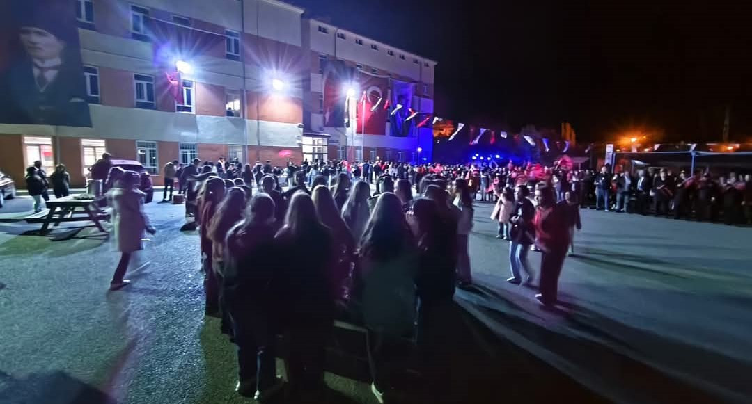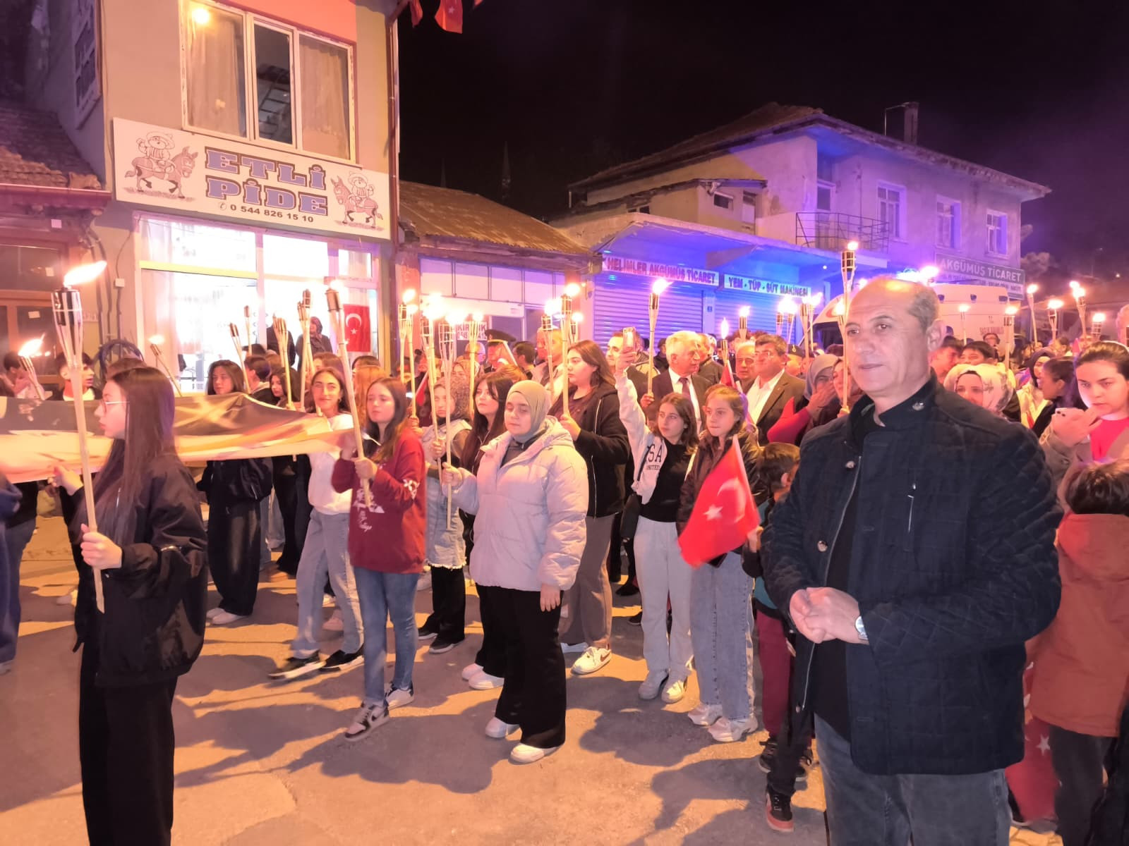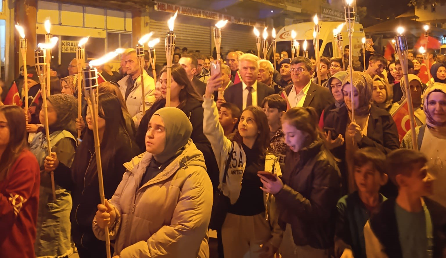 Eğitim camiası mensupları ile öğrencilerin de iştirak ettiği fener alayı yürüyüşü anıt alanında başlarken, Durmuş Akkuş Anadolu Lisesi önünde son buldu.