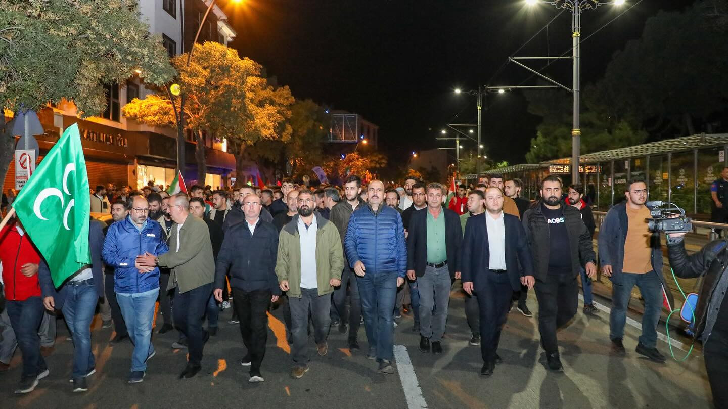 Yürüyüşe vatandaşlarla birlikte ön saflarda katılan Altay, "Katil İsrail’in zulmüne karşı Filistin’li kardeşlerimiz için omuz omuza yürüyen hemşehrilerimden Allah razı olsun."ifadelerine yer verdi.