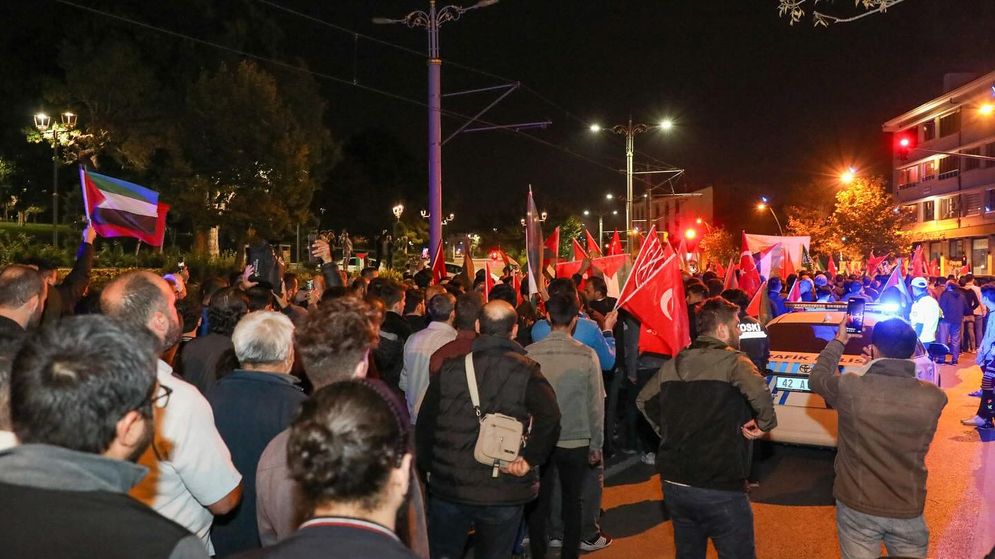 İsrail'in Gazze'deki hastane saldırısının ardından Konyalılar Gazze için tek yürek oldu. Binlerce kişi, Zafer Meydanı'nda Filistinliler için bir araya geldi.