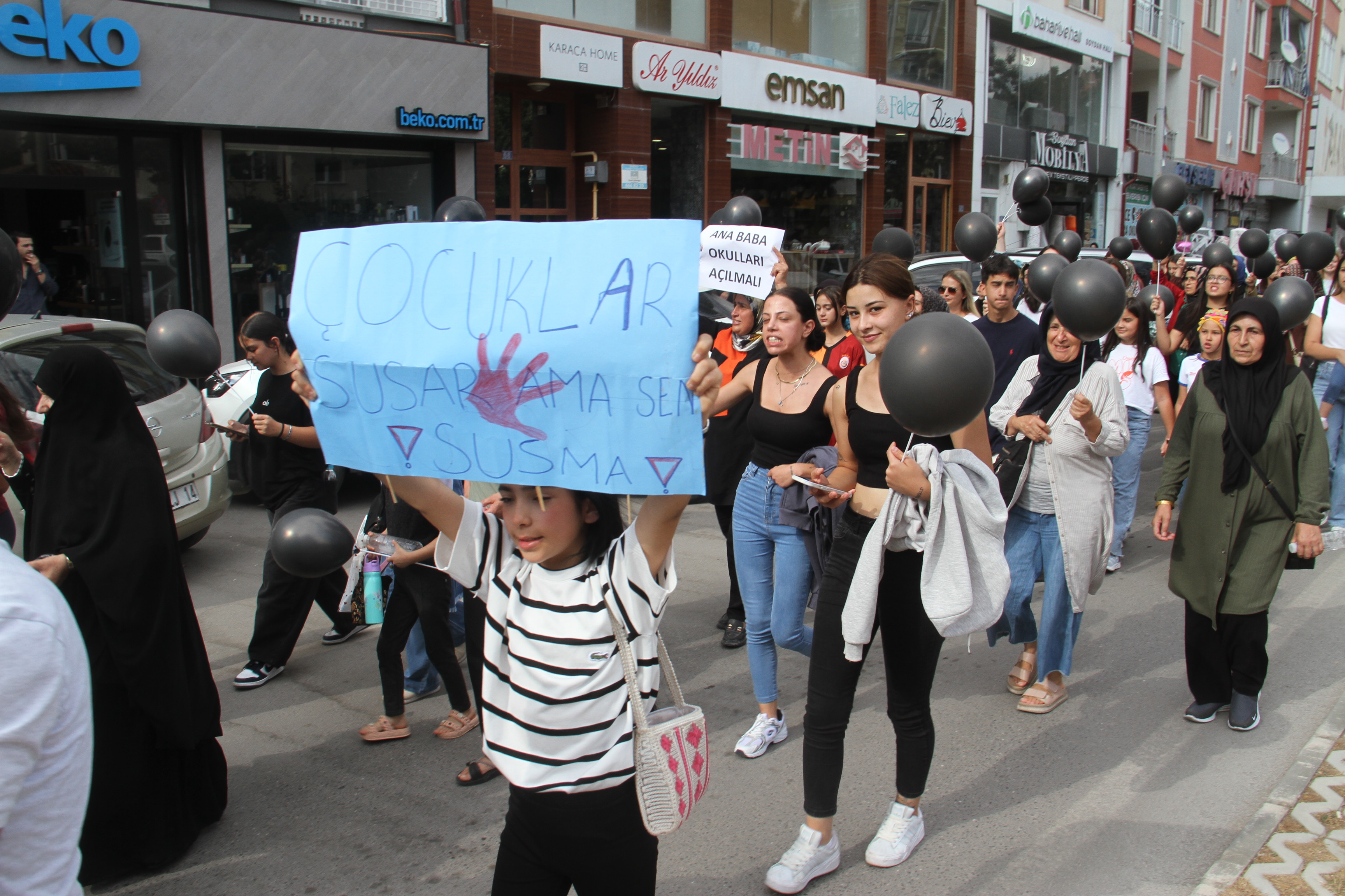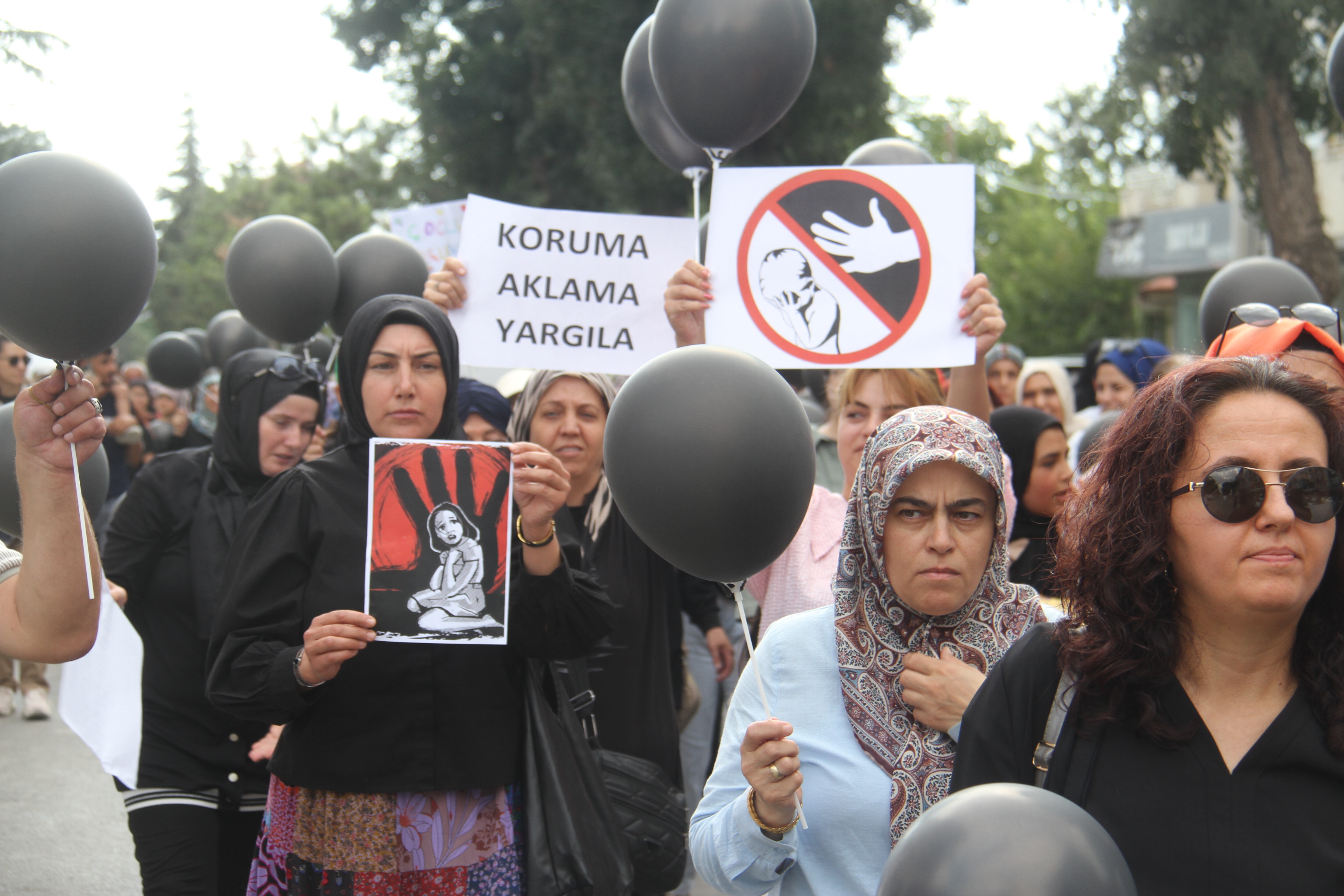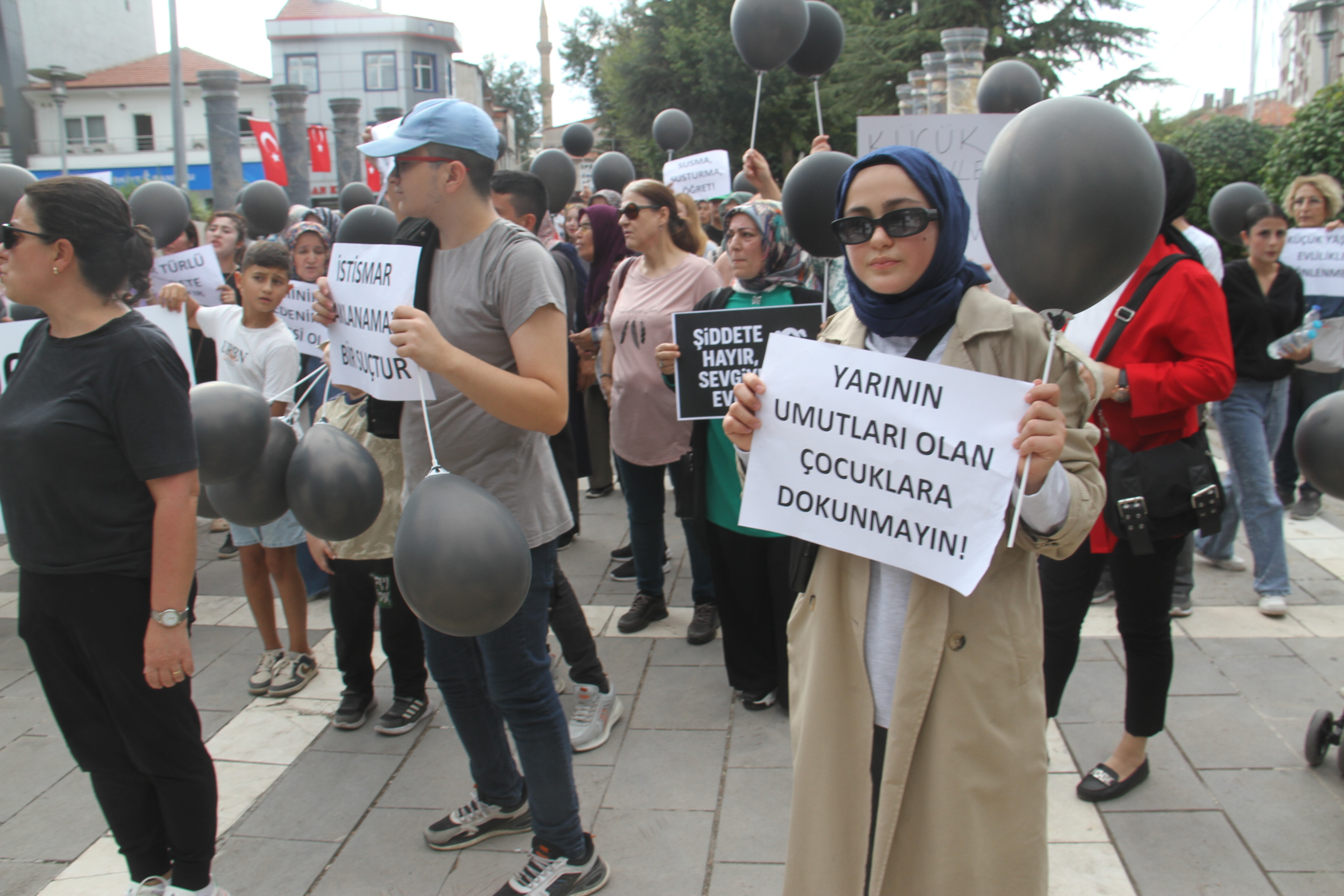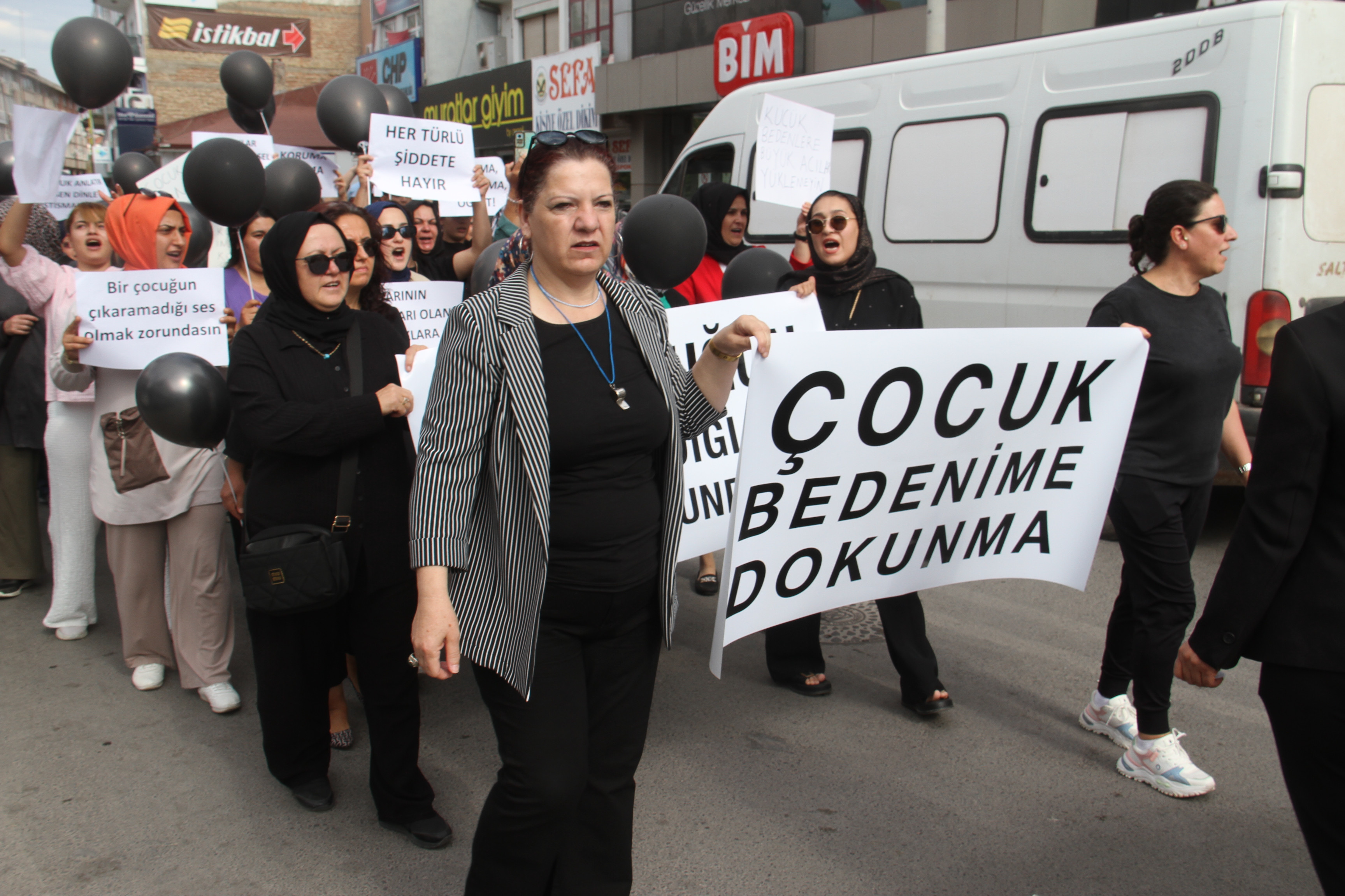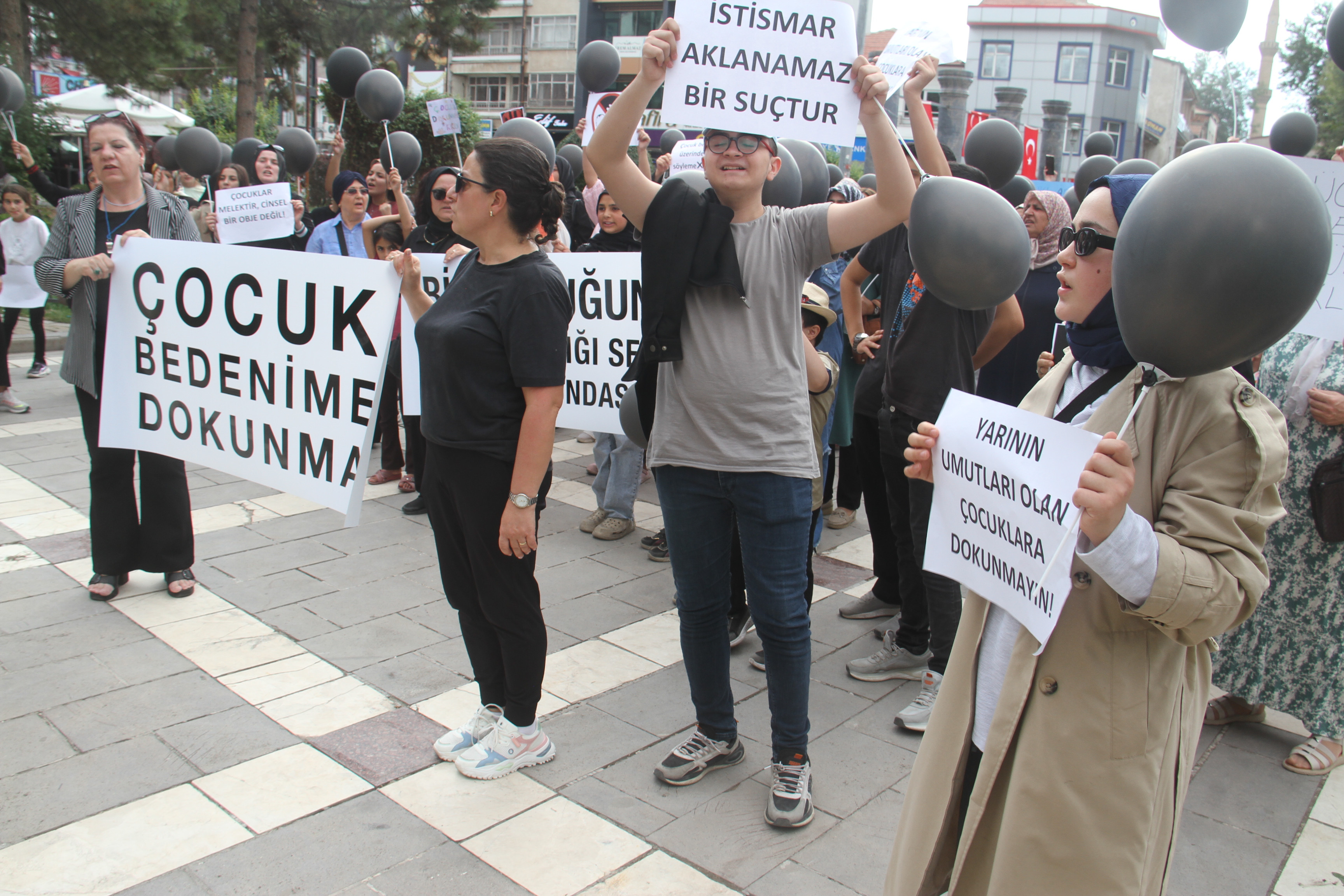 Kalabalık ellerinde, “yarının umutları olan çocuklara dokunmayın”, “istismar aklanamaz bir suçtur”, “koruma, aklama, yargıla”, “çocuklar melektir, bir cinsel obje değil”, “çocuk bedenleri üzerinden söz söyleme”, “çocuklara dokunan eller kırılsın”, “çocukları korumak, insanlığı korumaktır”, “çocuklar susar ama sen susma”, “küçük bedenlere büyük acılar yüklemeyin,şiddete hayır, sevgiye evet” içerikli döviz ve pankartlar taşıyarak yürüyüşü gerçekleştirdi.