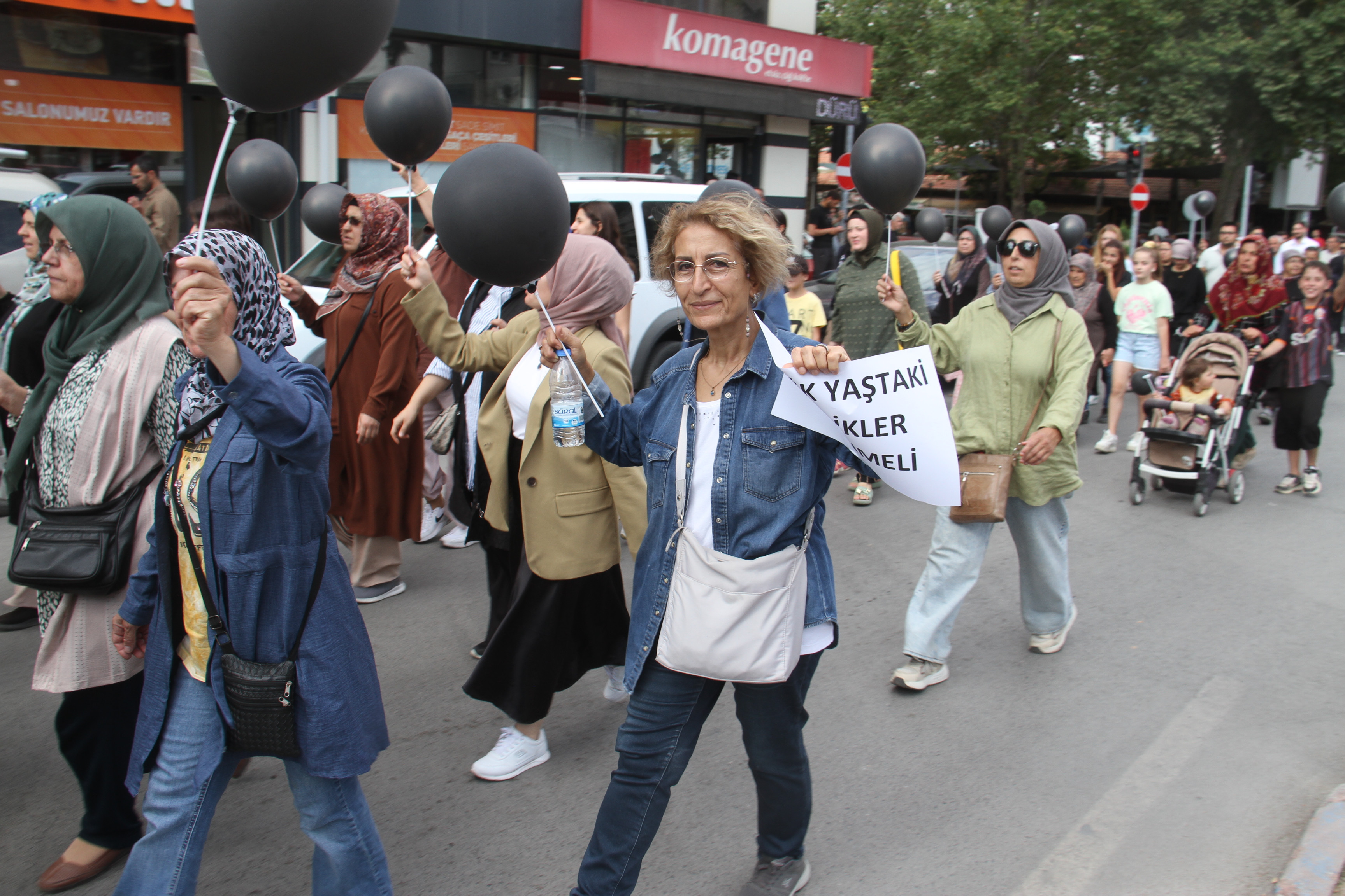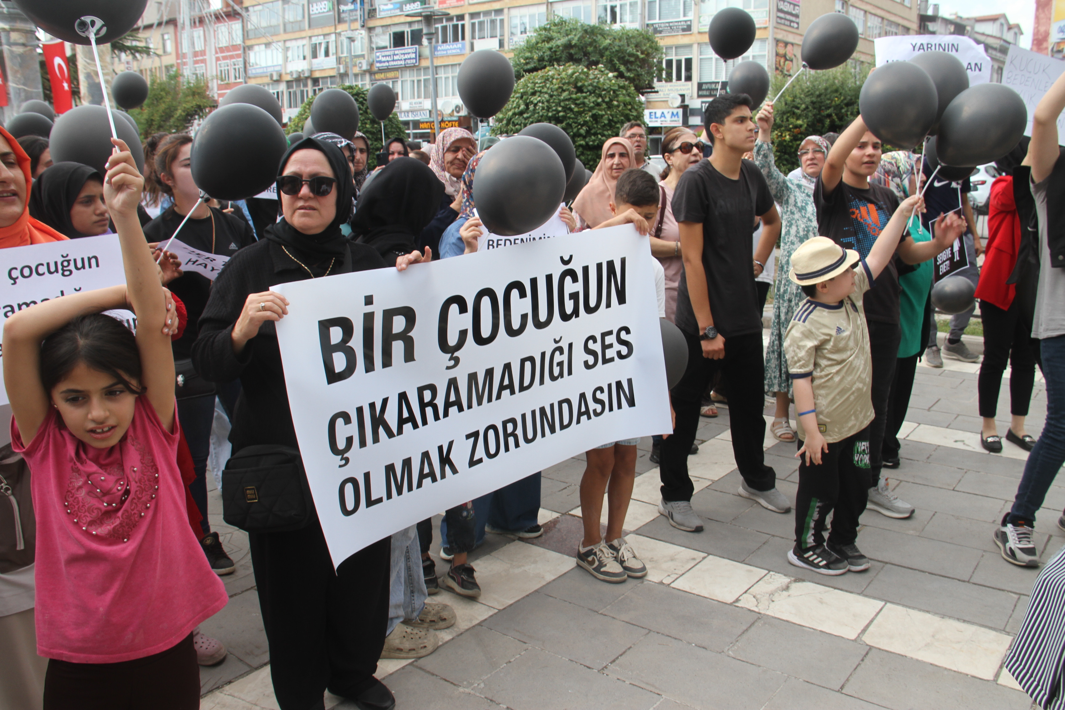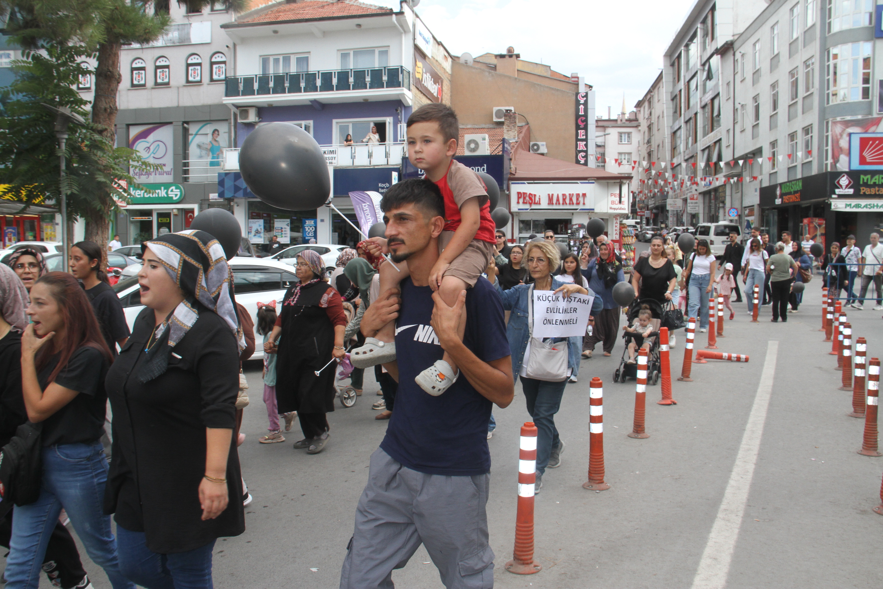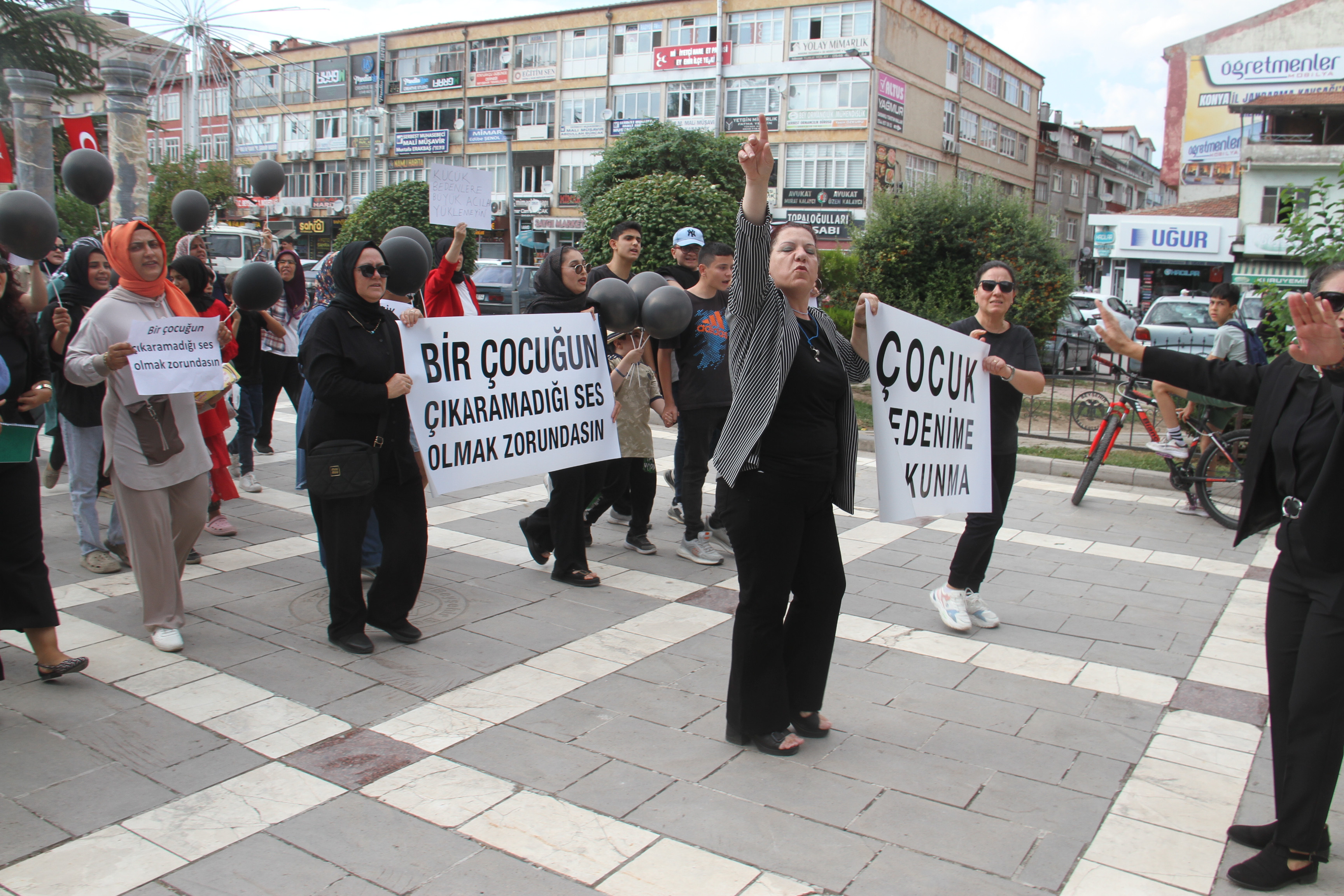 Kalabalık ellerinde, “yarının umutları olan çocuklara dokunmayın”, “istismar aklanamaz bir suçtur”, “koruma, aklama, yargıla”, “çocuklar melektir, bir cinsel obje değil”, “çocuk bedenleri üzerinden söz söyleme”, “çocuklara dokunan eller kırılsın”, “çocukları korumak, insanlığı korumaktır”, “çocuklar susar ama sen susma”, “küçük bedenlere büyük acılar yüklemeyin,şiddete hayır, sevgiye evet” içerikli döviz ve pankartlar taşıyarak yürüyüşü gerçekleştirdi.