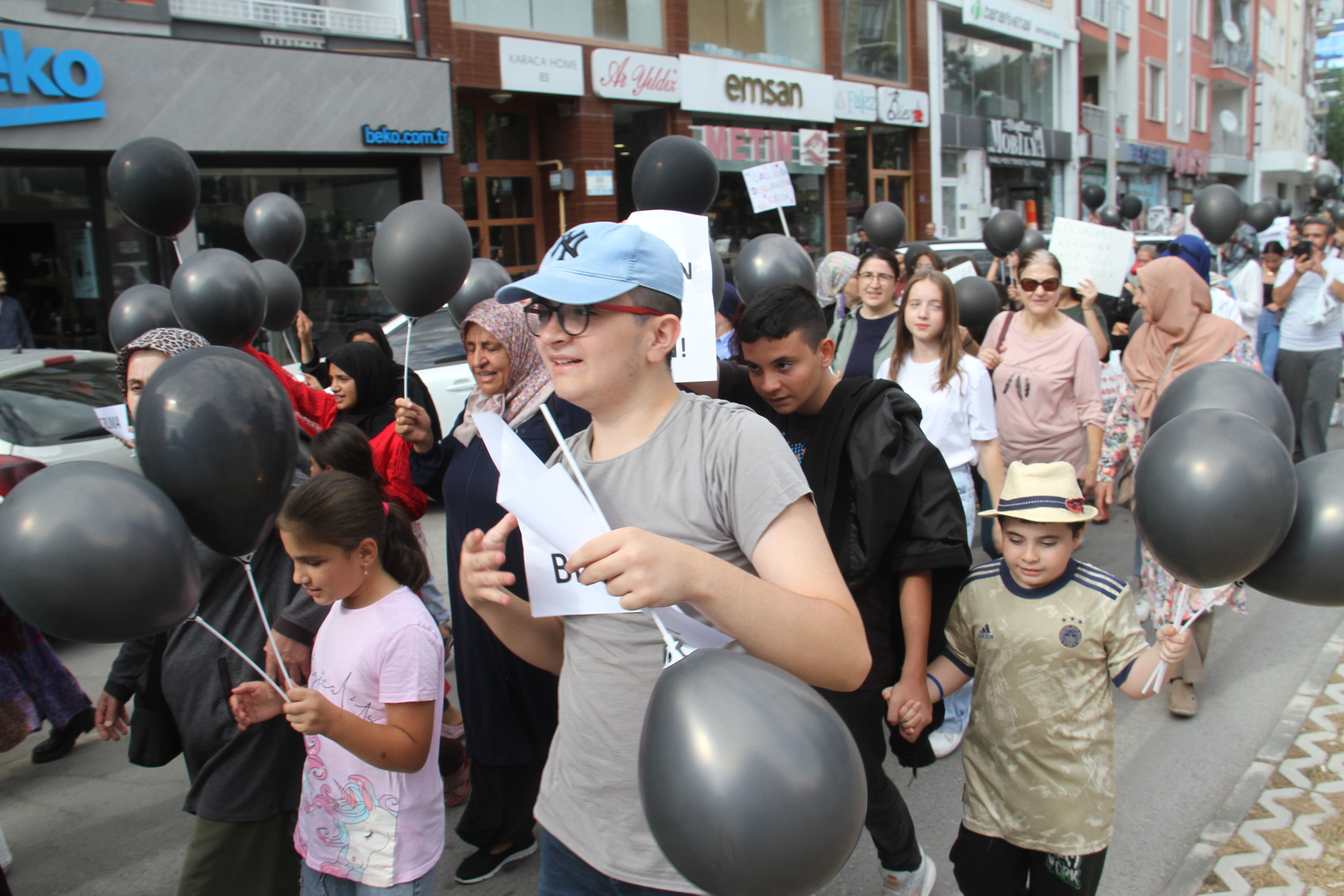 SİYAH BALONLARLA YÜRÜDÜLER,SÜRÜCÜLER DE KALABALIĞA KORNA ÇALARAK DESTEK VERDİ