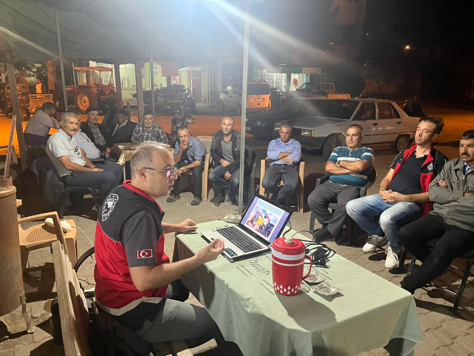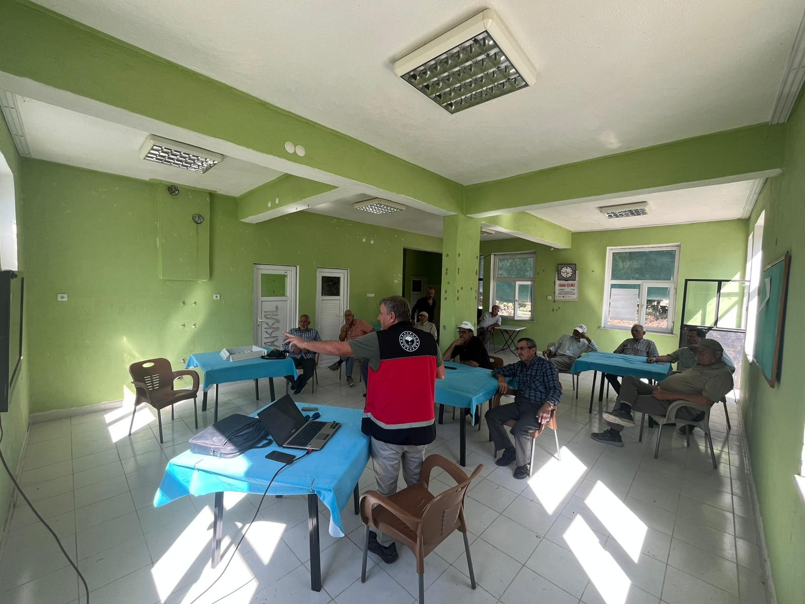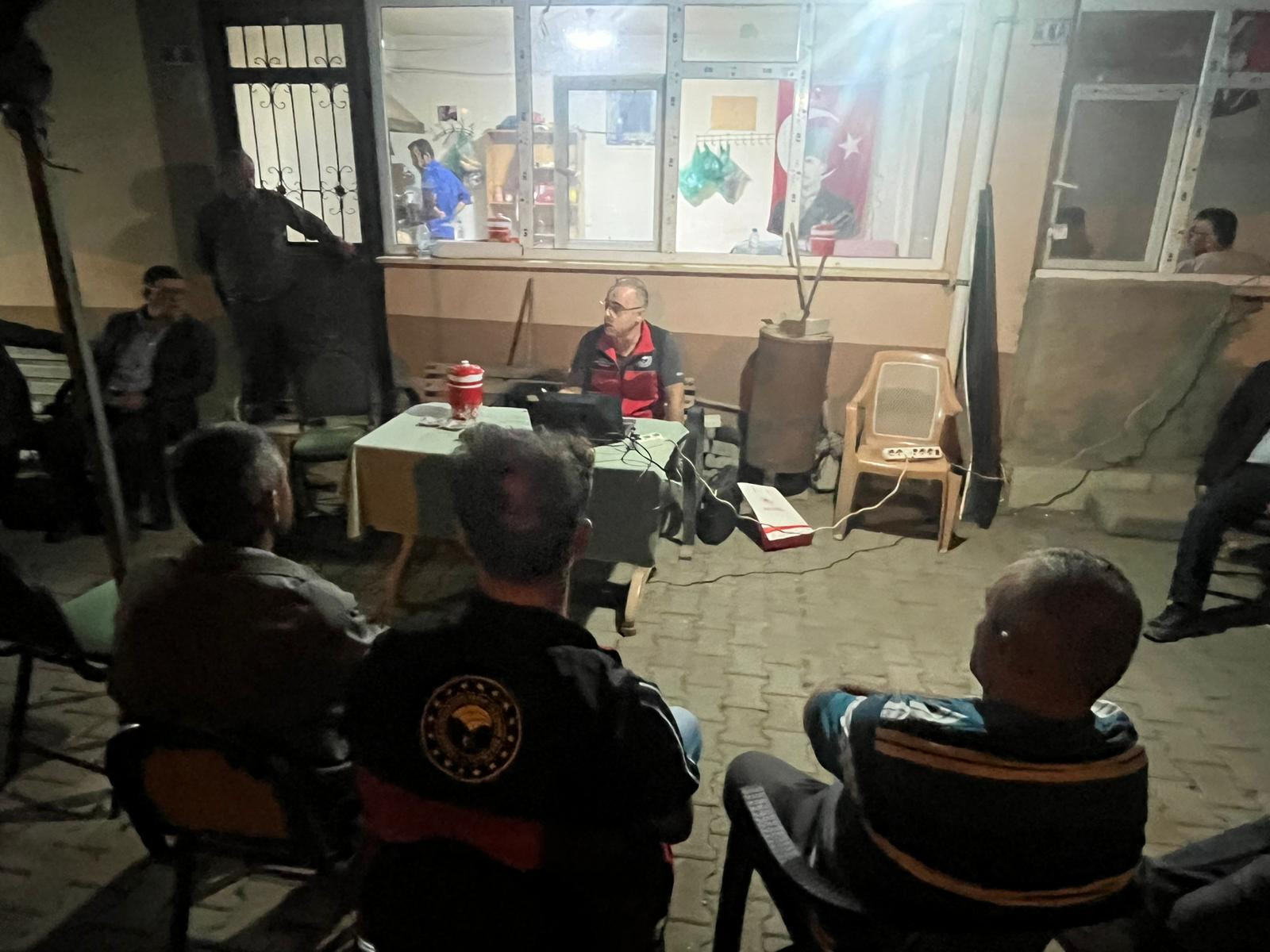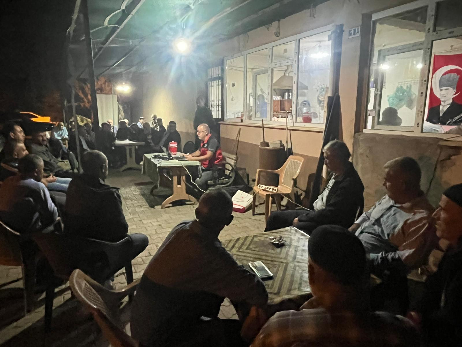 Mahalle sakini çiftçilerle tarımsal üretim planlaması kapsamında düzenledikleri eğitim toplantısında bir araya gelen görevliler,gece gündüz demeden mesaisini sürdürdü.