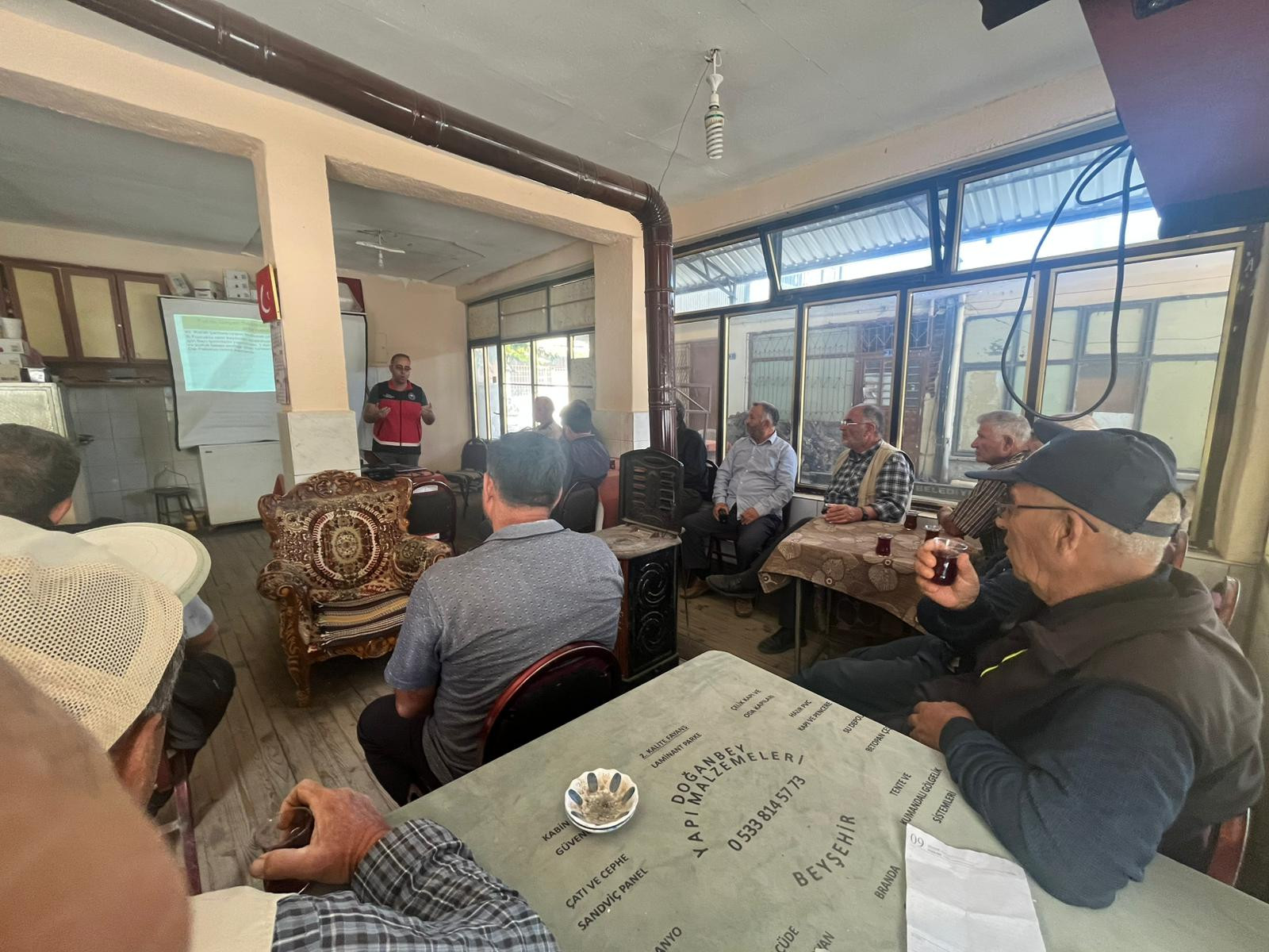 Kahvehanelerde bir araya gelen çiftçiler hem çaylarını yudumluyor hem de ziraat mühendislerinin kendileri için aktardığı özel bilgi paylaşımlarından istifade ediyor.