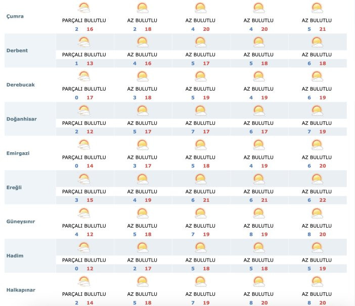 İşte ilçe ilçe Konya hava durumu tahmini: