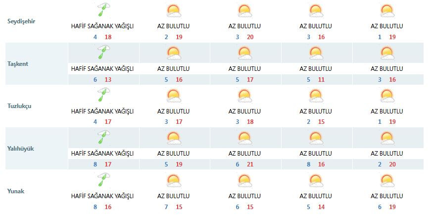 İşte ilçe ilçe Konya’nın 5 günlük hava durumu tahmini: