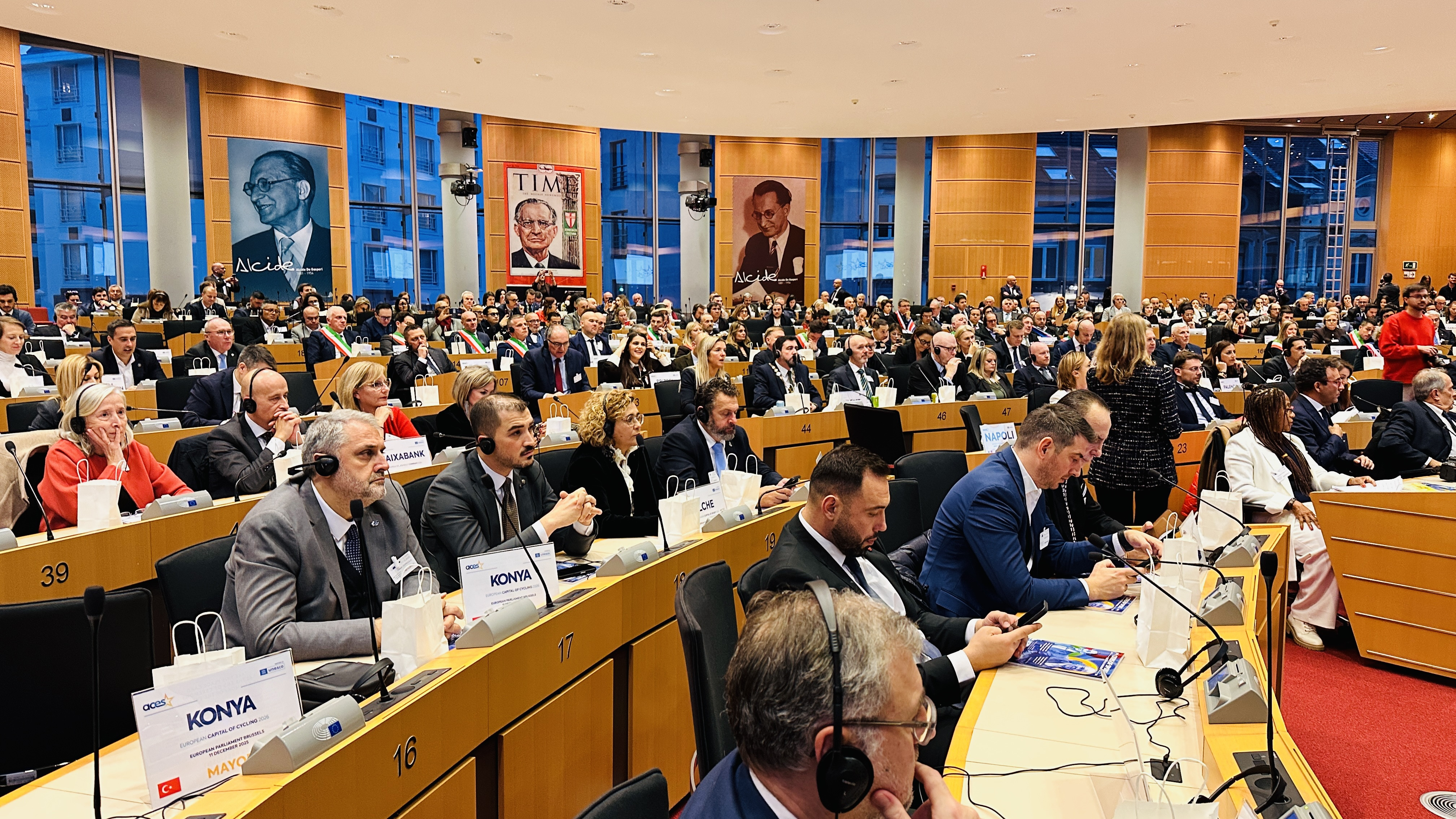 Belçika’nın başkenti Brüksel’de, Avrupa Parlamentosu’nda düzenlenen törende Konya’ya verilen “2026 Avrupa Bisiklet Başkenti” unvanı, Konya Büyükşehir Belediyesi Başkan Vekili Ahmet Murat Koru’ya takdim edildi.