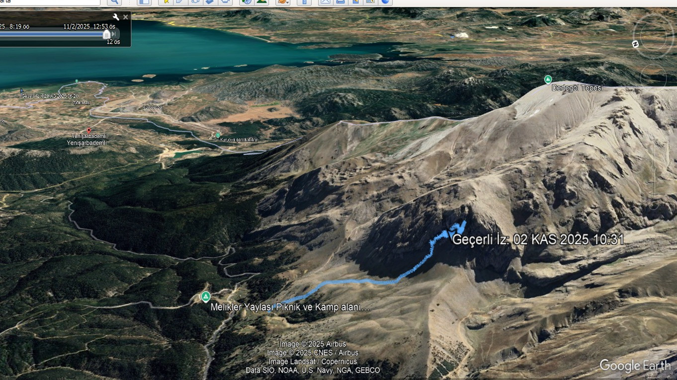 Mağara tutkunu dağcılar, Dedegöl Zirvesi’nin kuzeyindeki Melikler Taşı kayalığının kuzey yamacında bulunan mağarayı daha yakından görebilmek için dağlık alanda zorlu bir tırmanış gerçekleştirdi.