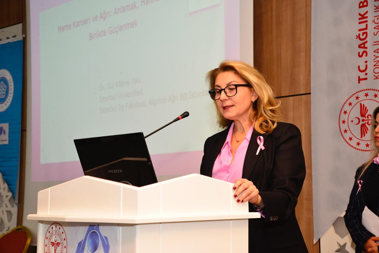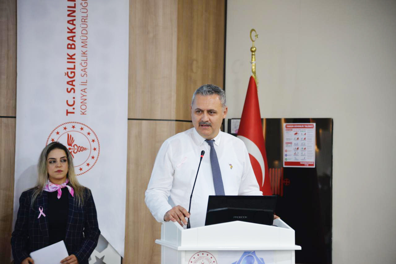 Konya İl Sağlık Müdürlüğü ile Necmettin Erbakan Üniversitesi Tıp Fakültesi iş birliğinde Meram Devlet Hastanesi konferans salonunda düzenlenen sempozyuma, İl Sağlık Müdürü Doç. Dr. Yusuf Yavuz, NEÜ Tıp Fakültesi Hastanesi Başhekimi Doç. Dr. Hasan Küçükkendirci ile birlikte alanında uzman çok sayıda akademisyen katılarak, meme kanseri konusunda katılımcılara önemli bilgiler sundu.