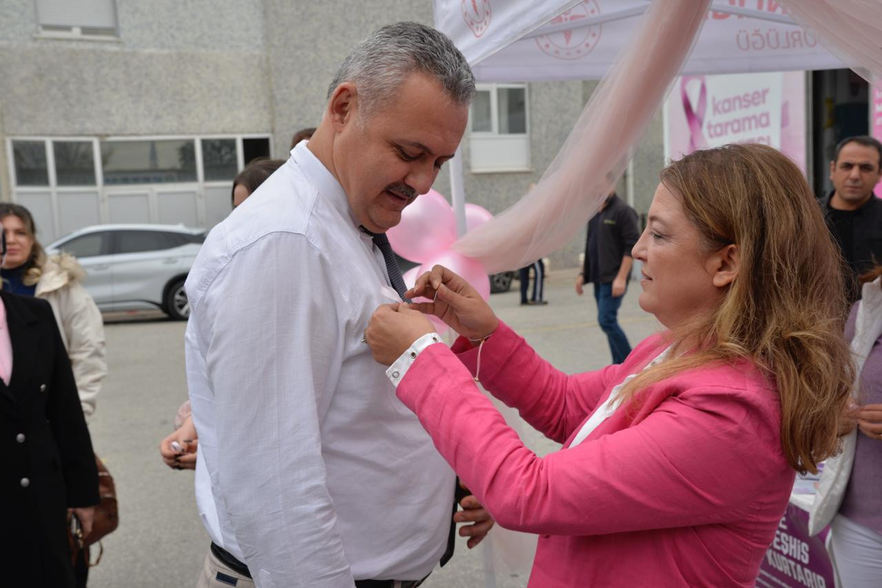 Ayrıca stant görevlileri, farkındalık oluşturmak amacıyla hasta ve yakınlarına pembe kurdeleler taktı.