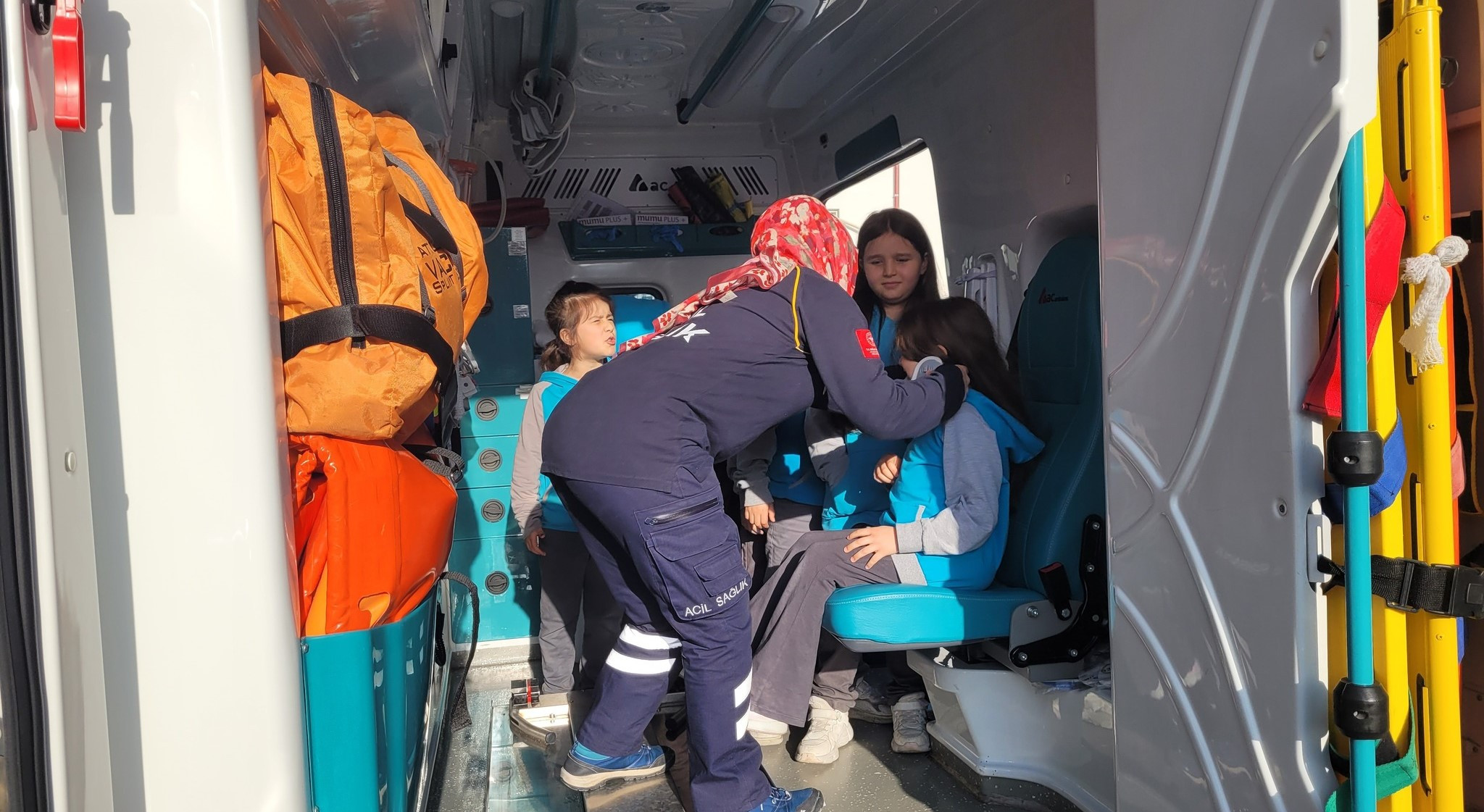 Eğitim kapsamında 112 Acil’in nasıl çalıştığı, hangi durumlarda aranması gerektiği ve sağlık ekiplerinin görevleri öğrencilere anlatıldı. Ardından okul bahçesine getirilen ambulans ve sağlık ekipmanları tanıtıldı.