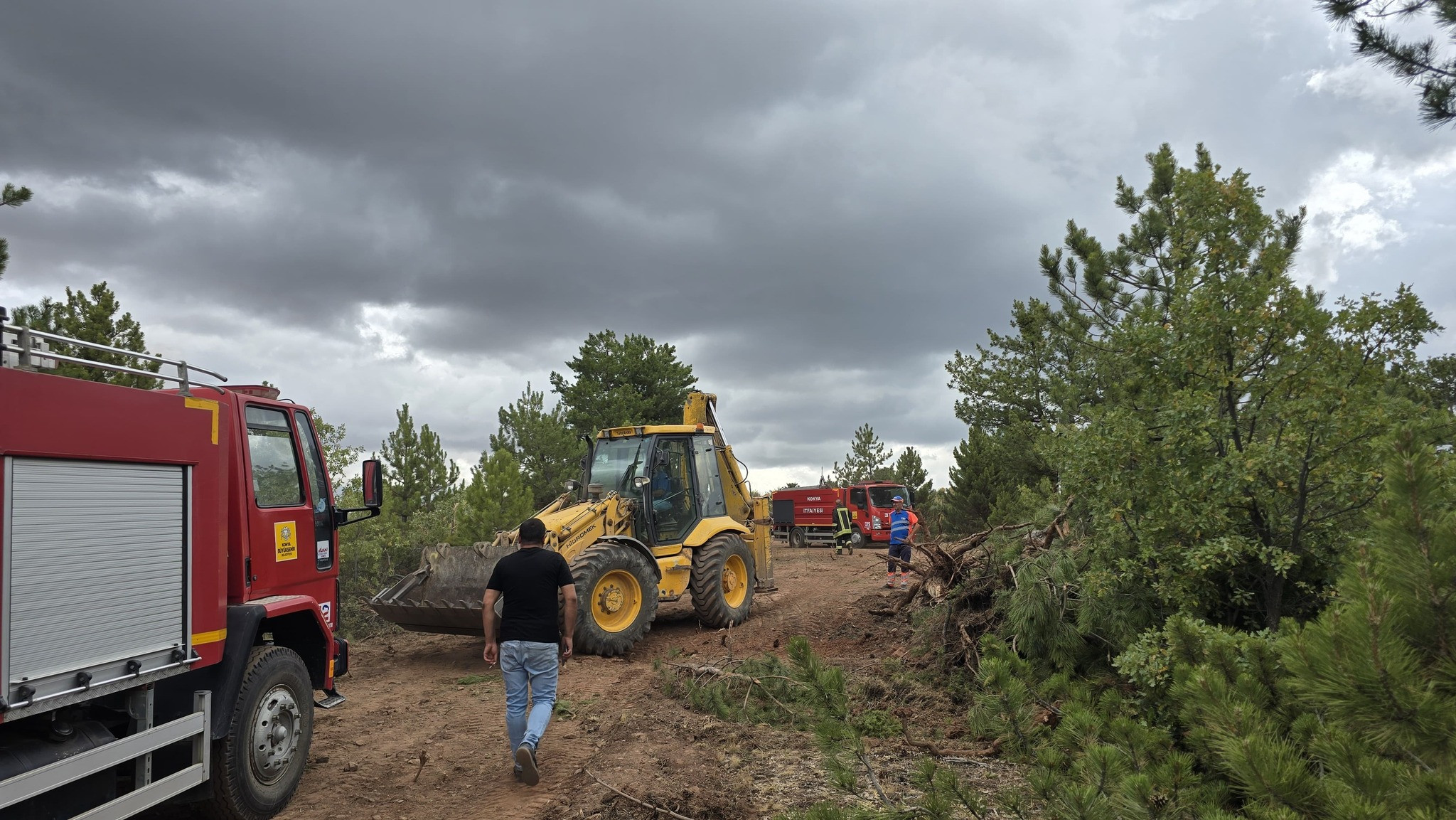 İhbar üzerine adrese orman teşkilatına bağlı arazözler, itfaiye ekipleri ve belediyeye ait iş makineleri yönlendirildi.