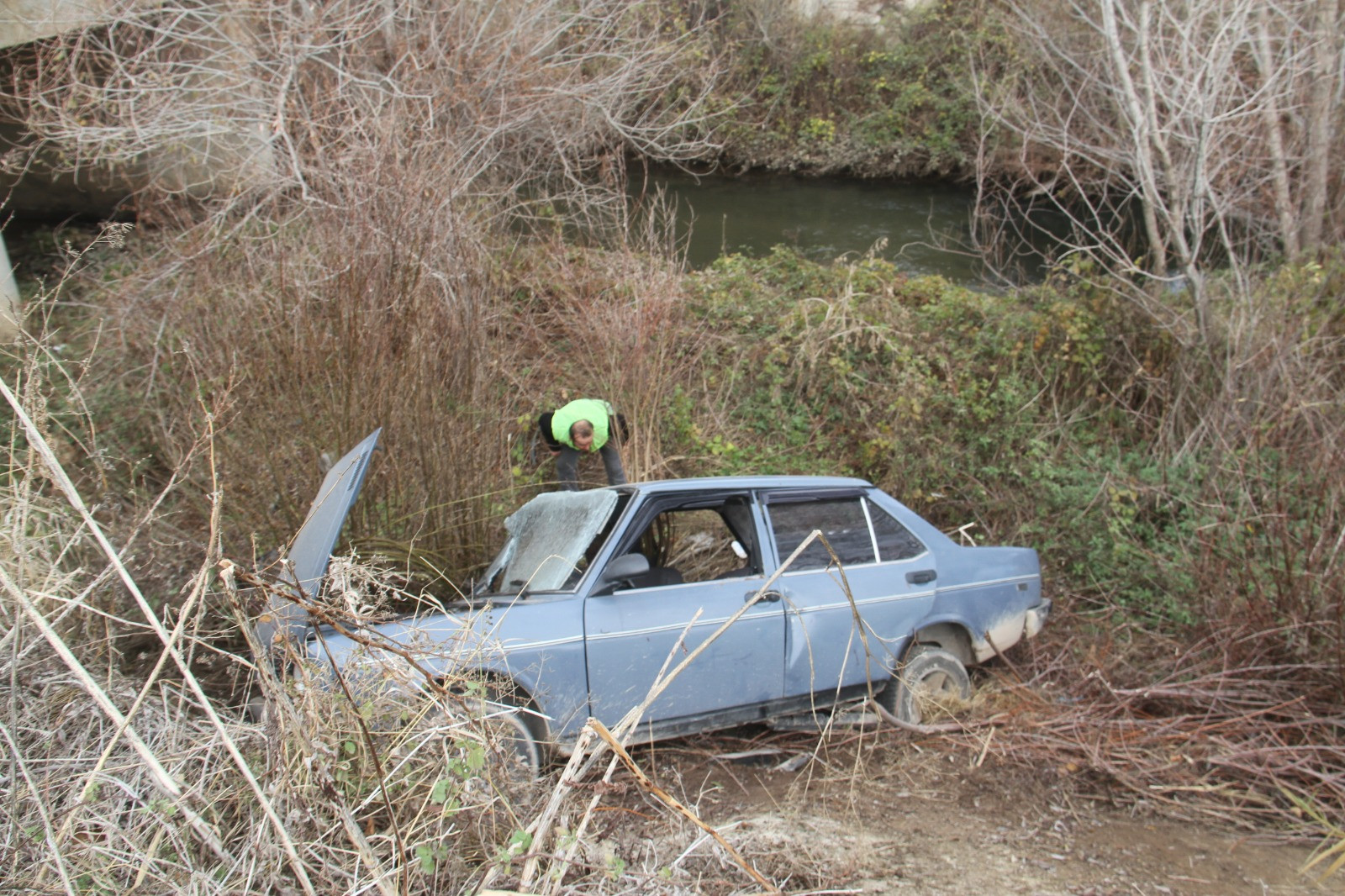 Dere yatağındaki otomobil adrese çağrılan bir vinçle kaza yerinden kaldırıldı.