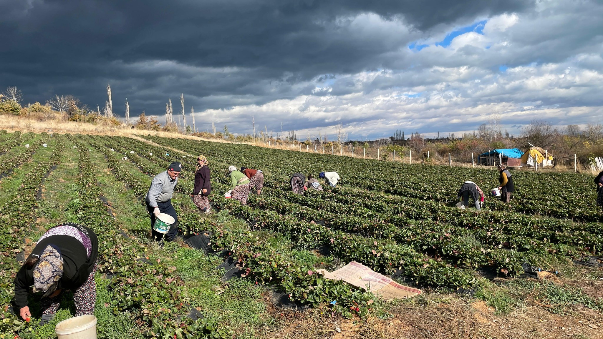 Özver, beraberindeki teknik personelle birlikte Beyşehir'in Kurucuova Mahallesi'nde çilek hasatı yapan bahçe sahiplerini ziyaret etti.