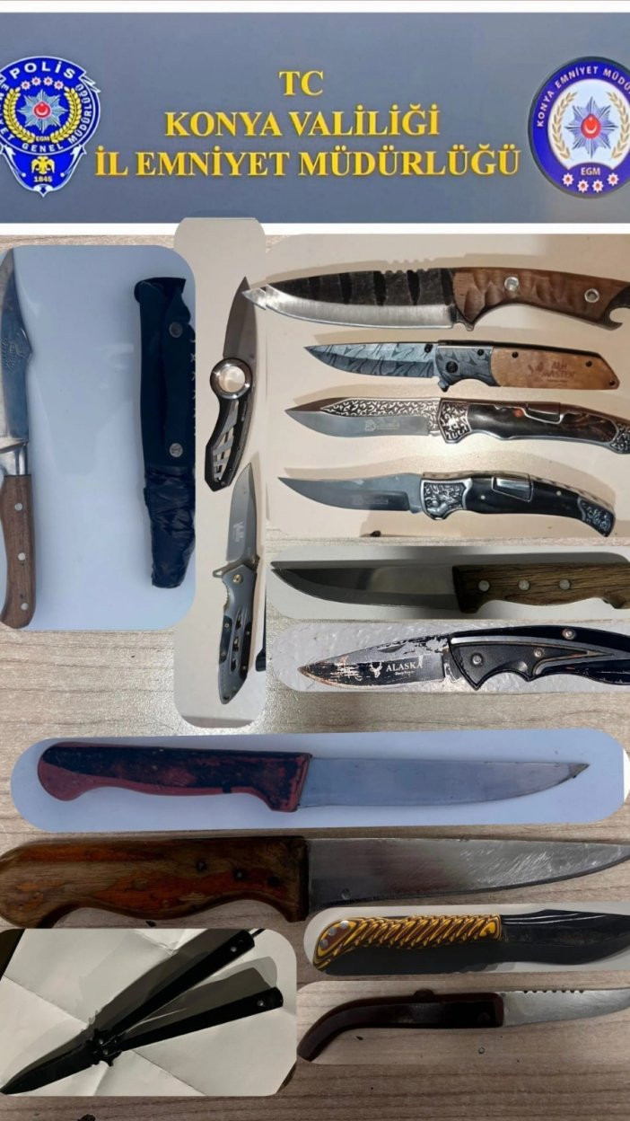 Denetimlerde çok sayıda suç unsuru da ele geçirildi. Polis ekipleri 29 ruhsatsız tabanca, 45 av tüfeği, 48 kurusıkı tabanca, 844 kesici-delici alet ile 509 mermiye el koydu. Kaçakçılıkla mücadele kapsamında ise 8 gümrük kaçağı cep telefonu ve 128 paket sigara ele geçirildi.