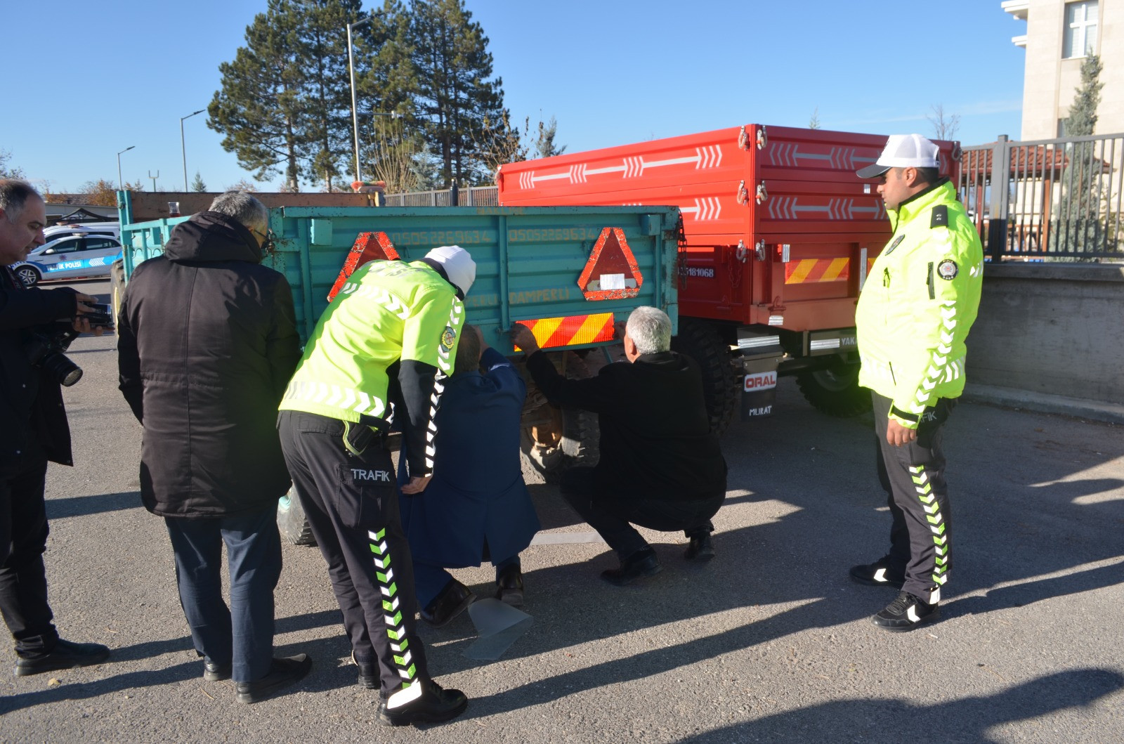 Ekiplerce ayrıca, Karayolları Trafik Kanununa göre akşam saatlerinde traktörlerin gece trafiğe çıkmasının yasak olduğu da hatırlatıldı.