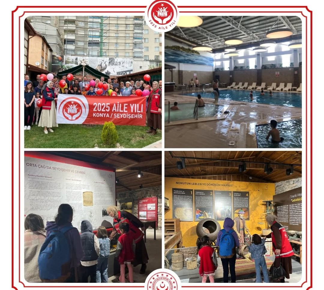 2025 yılı Aile Yılı ve 23 Nisan Ulusal Egemenlik ve Çocuk Bayramı kapsamında düzenlenen etkinlikte aileler ve çocuklar Seydişehir ilçesinde faaliyet gösteren Seydi Şifa Termal Tesislerinde yüzme keyfi yaşarken, ardından düzenlenen müze gezisine katıldı.
