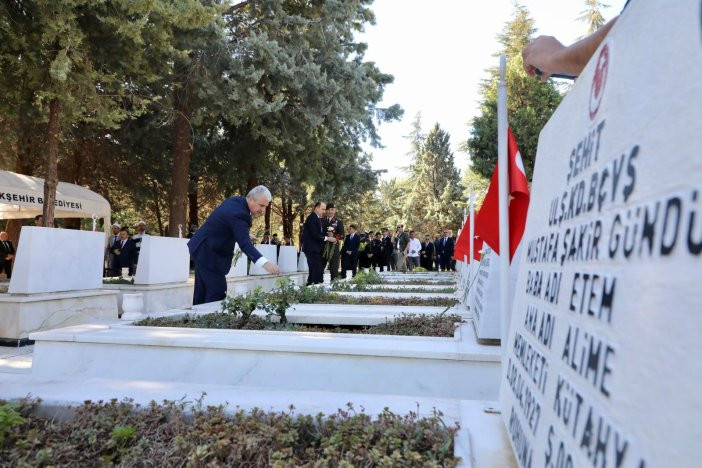 Program kapsamında daha sonra Vali İbrahim Akın ve beraberindekiler Konya Şehitliği’ni ziyaret etti. Şehit aileleri ve gazilerle birlikte mezarları ziyaret eden Vali Akın, şehitler için karanfil bırakarak dua etti.