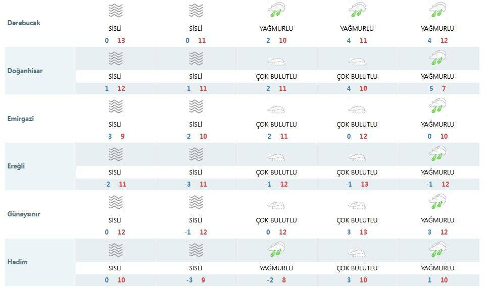 İşte gün gün Konya ve ilçelerinin hava durumu tahmini…