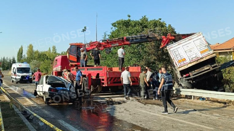 Kaza, Kuz Mahallesi Yenidoğanhisar Caddesi’nde yaşandı. İsmail Altıok (76) yönetimindeki 80 EL 938 plakalı otomobil ile Ahmet Kapcı (52) idaresindeki 42 VF 112 plakalı TIR kavşakta çarpıştı. Çarpmanın şiddetiyle TIR, yoldan çıkarak şarampole devrildi ve devrilen araçta yangın çıktı.