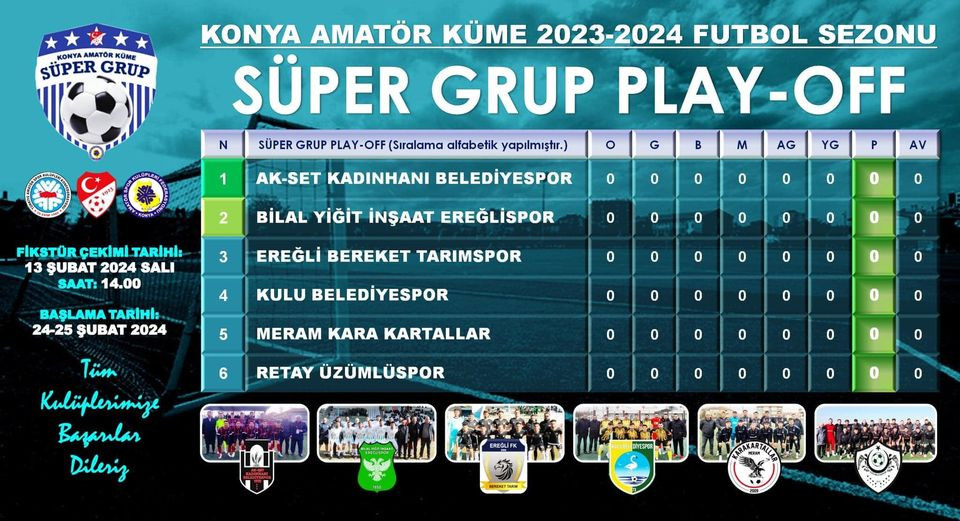 Play off grubunda 13 Şubat’ta fikstür çekilecek, Konya'da oynanacak karşılaşmalar ise 24-25 Şubat 2024’te başlayacak.