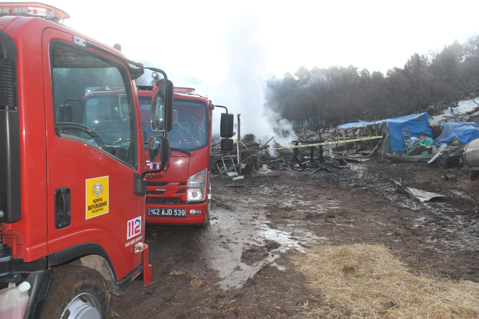 İhbar üzerine adrese çok sayıda itfaiye ve jandarma ekibi sevk edildi.