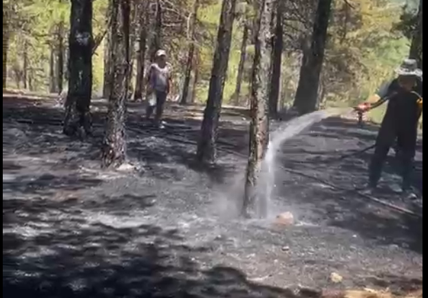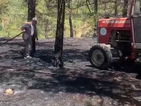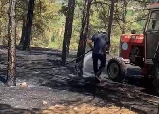 Traktörün alana taşıdığı su tankerinden uzatılan hortumlarla alevler Tarım İlçe Müdürlüğü görevlileri ve vatandaşların desteğiyle söndürülürken yangının daha da genişleyip büyümesi engellendi.